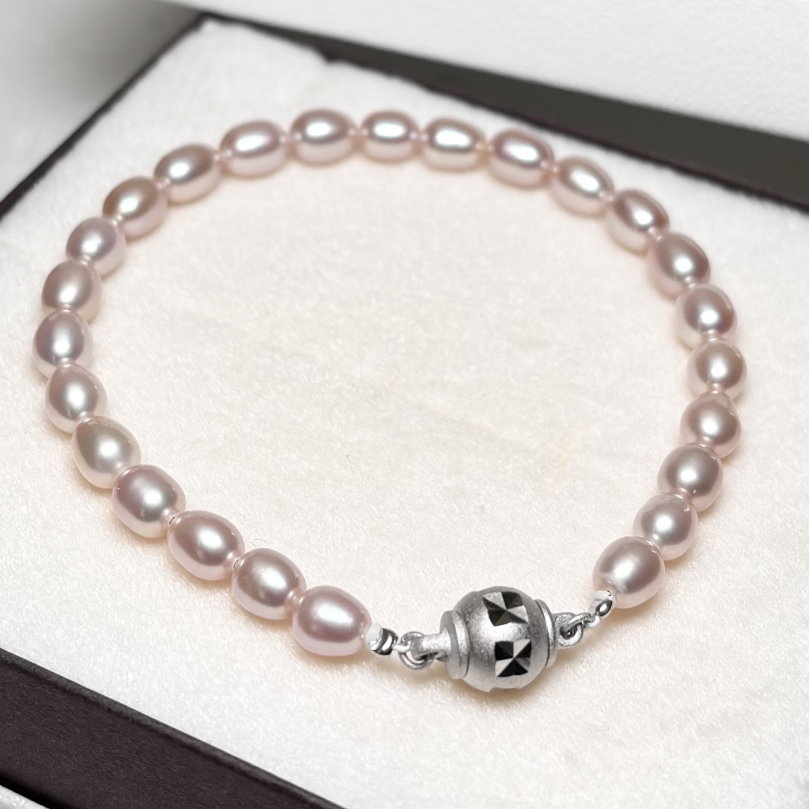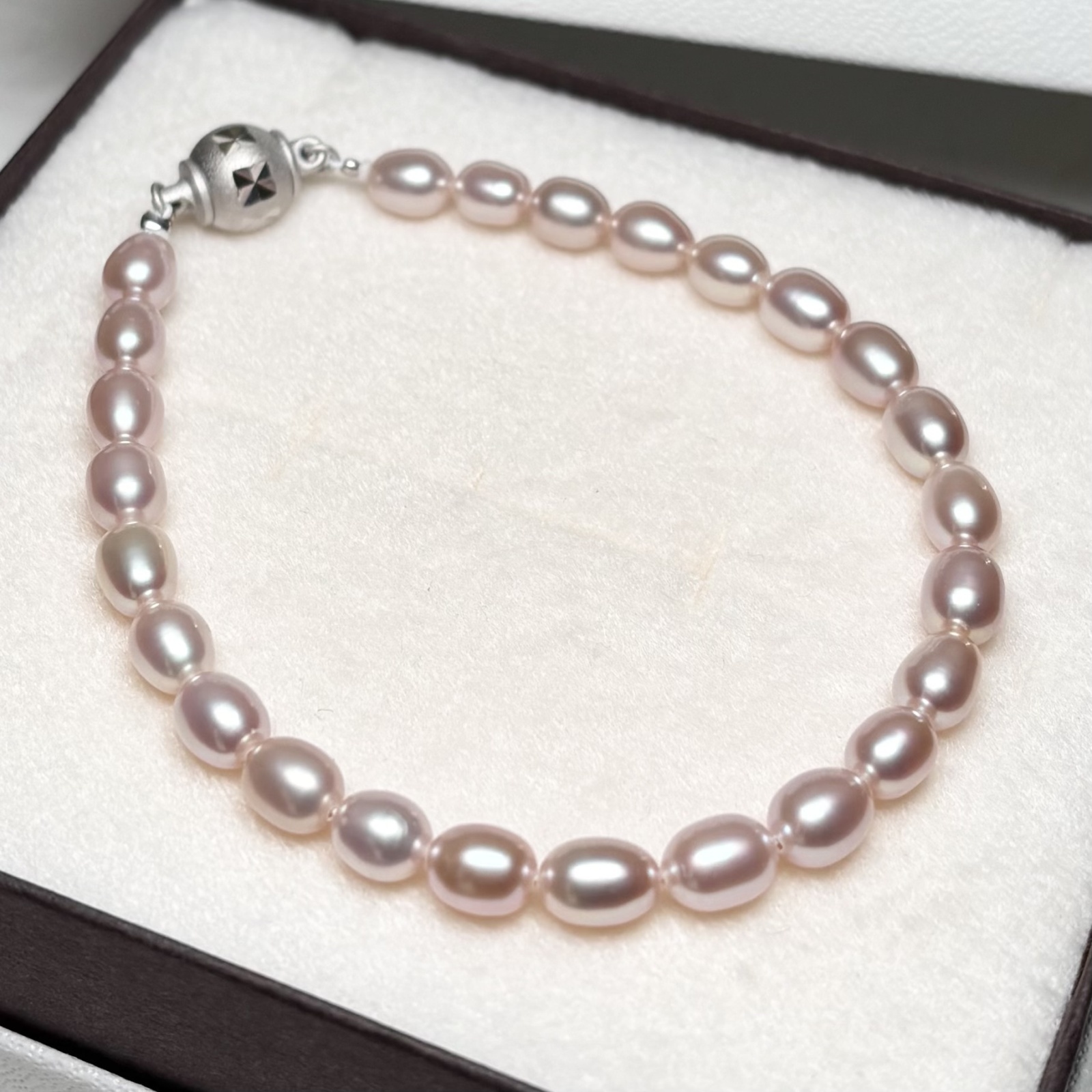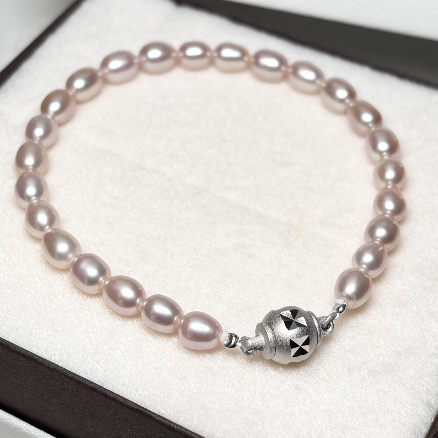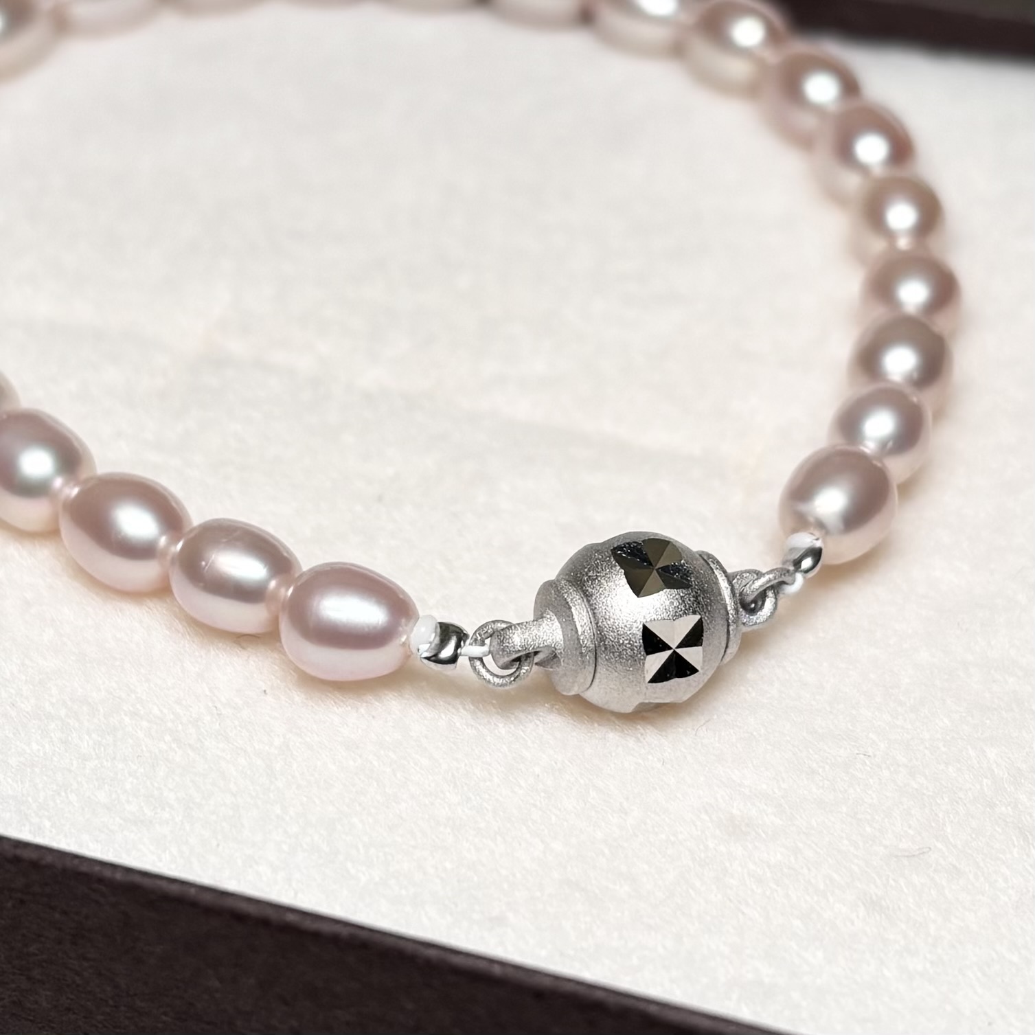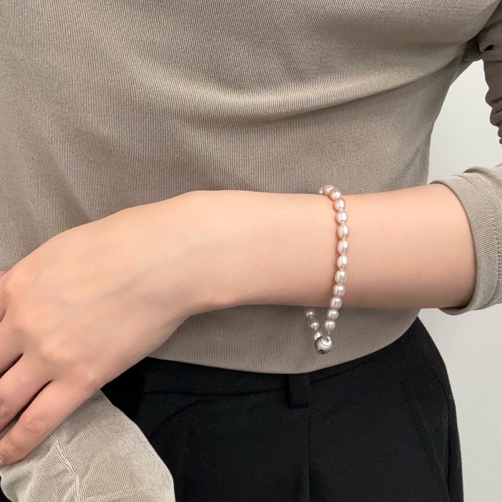 やわらかなナチュラルピンク系の色味が魅力の、淡水パールブレスレットです。ほんのり桜色を思わせる、やさしい色合いが手元に上品な華やかさを添えてくれます。