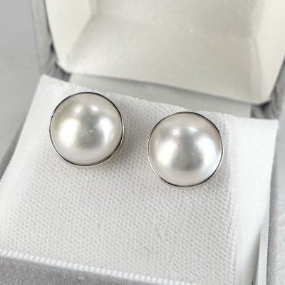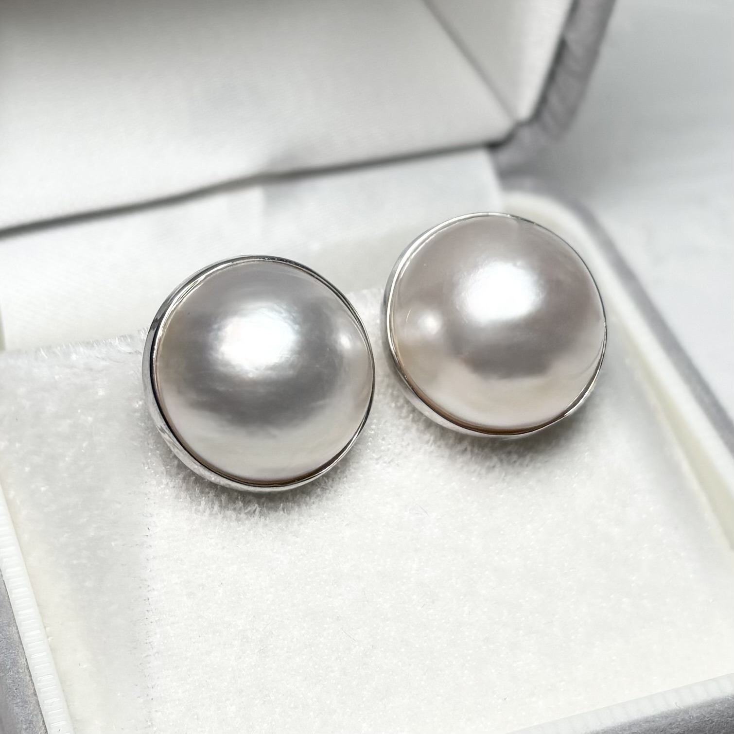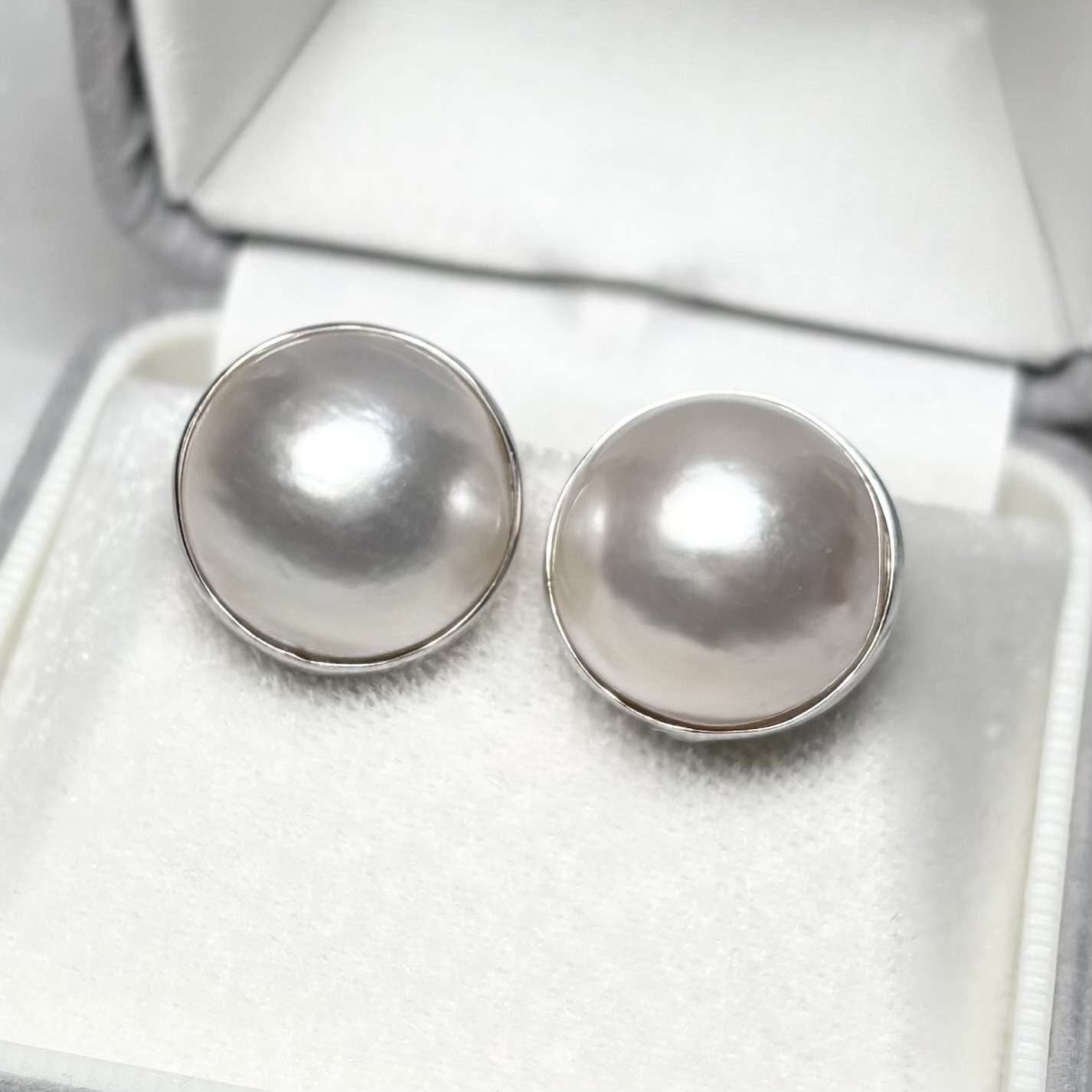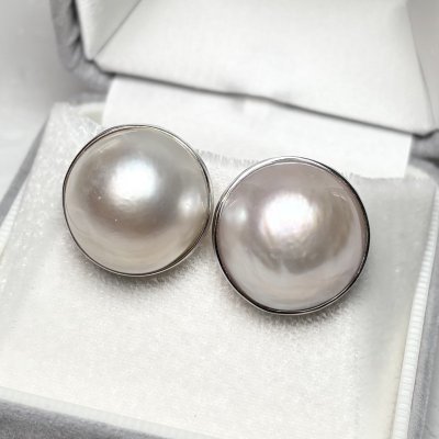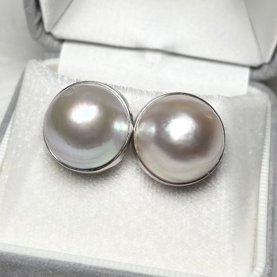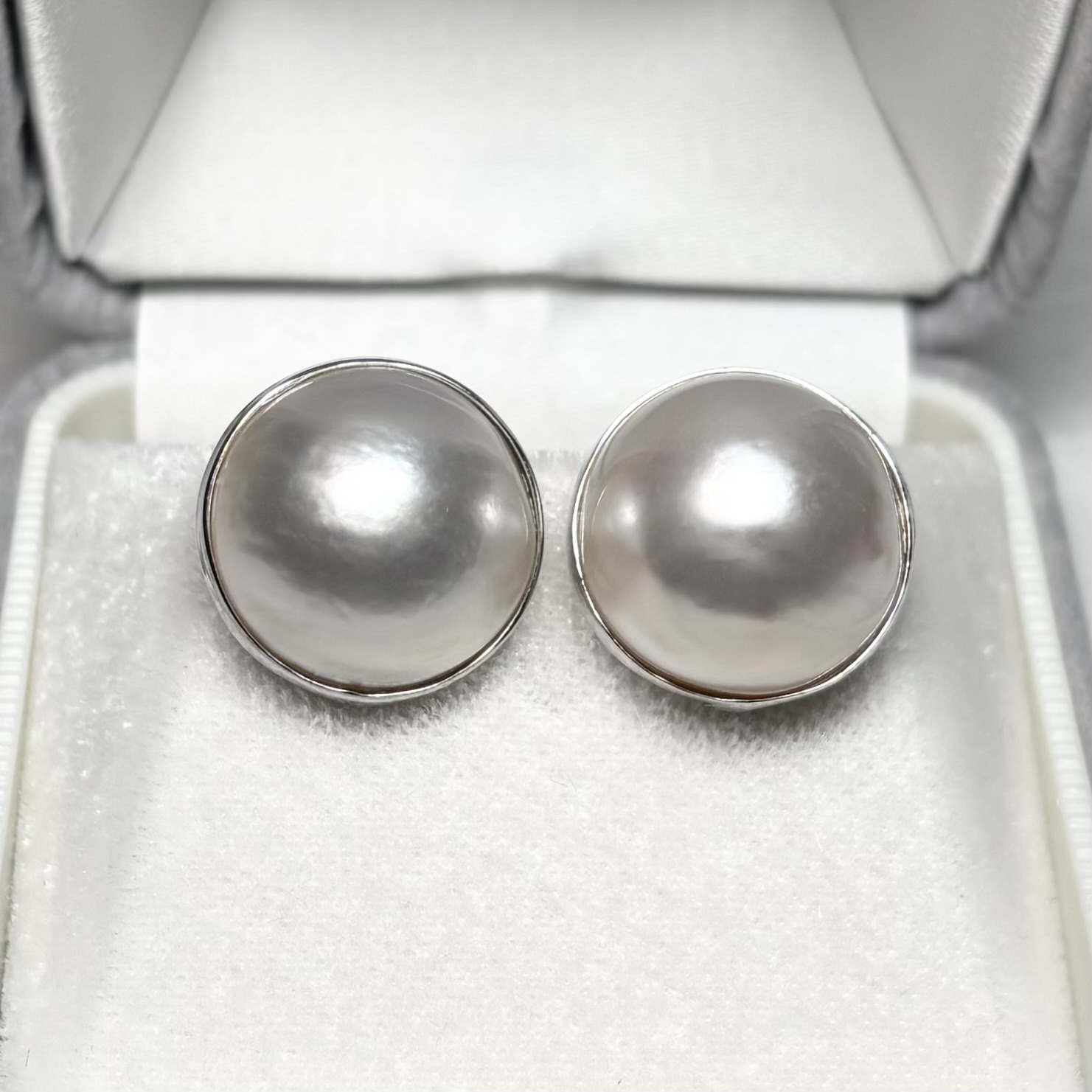 マベ真珠 パールイヤリング ホワイト 15-16mm 半円 SV925 直結