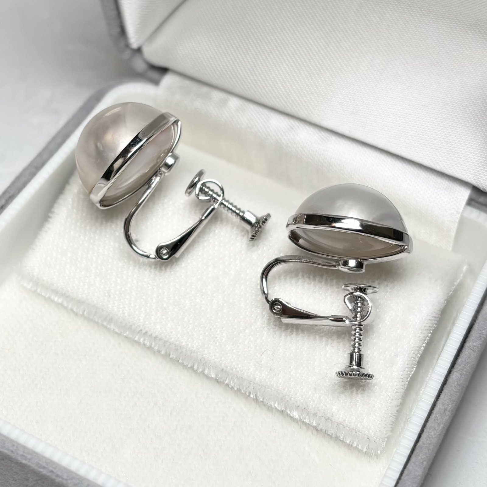 見る角度によってやわらかく表情を変える、マベ真珠ならではのやわらかな輝きが耳元を彩ります。