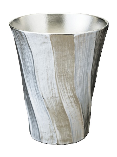 高品質で重厚感のある本錫を使用したタンブラーです。流れるような縦のラインが美しいデザインです。