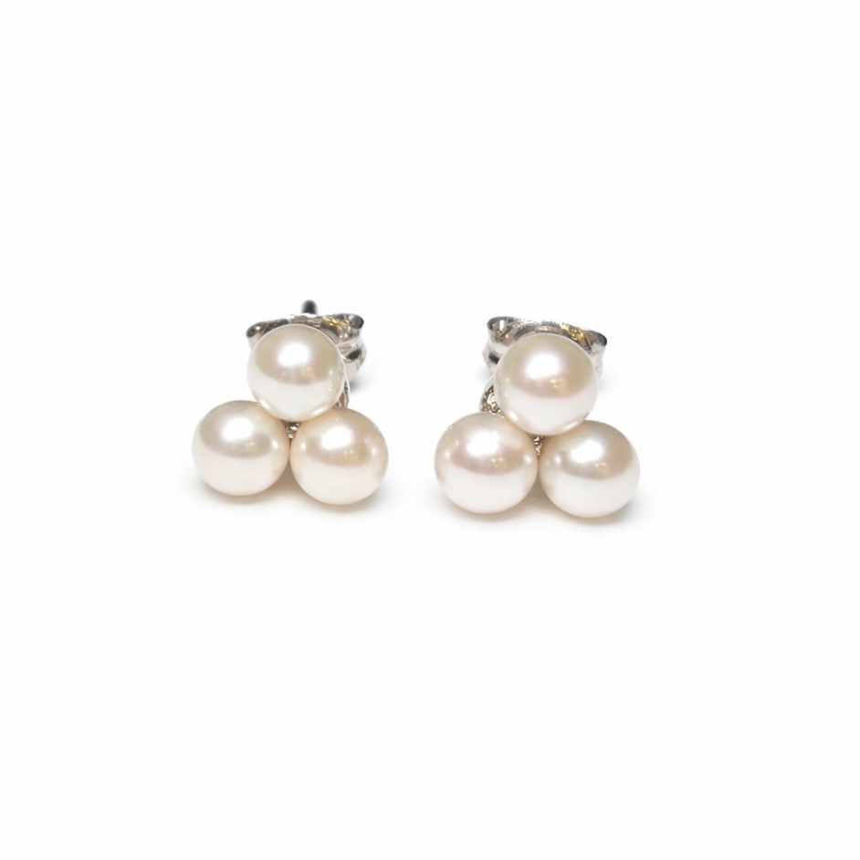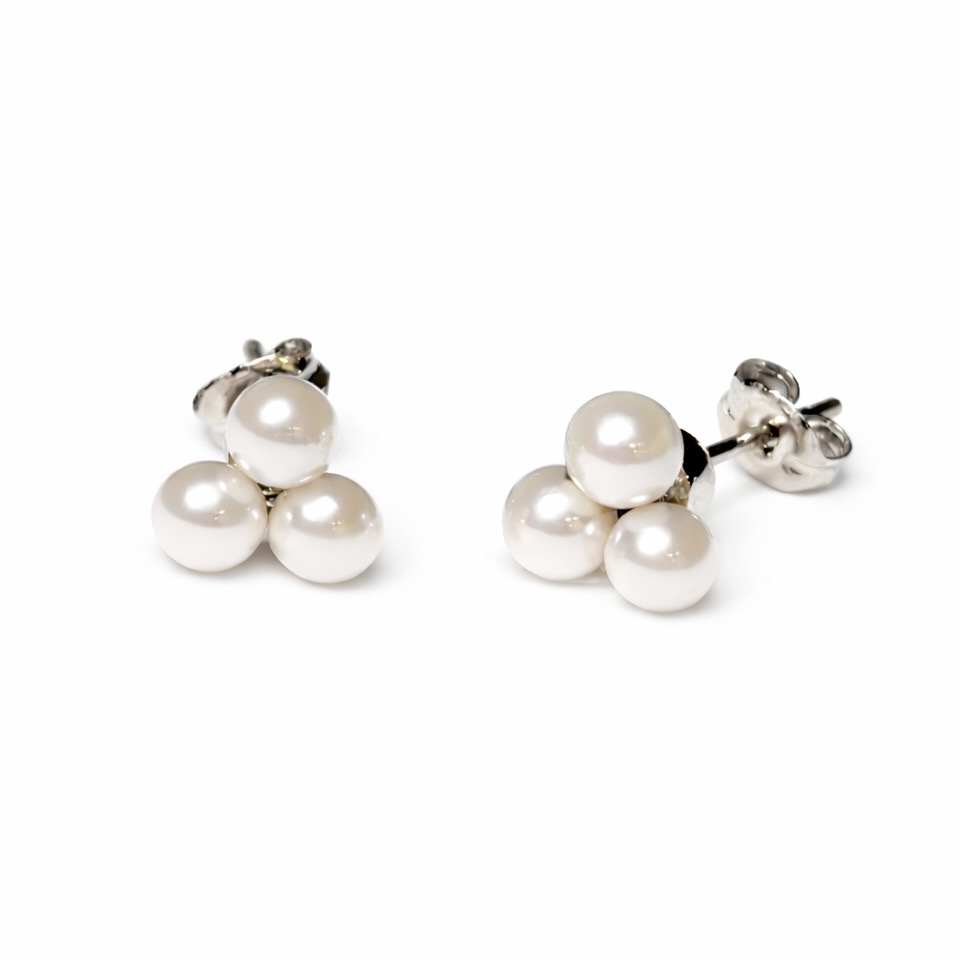 3粒をバランスよくあしらったデザインで、小ぶりながらもさりげない存在感。