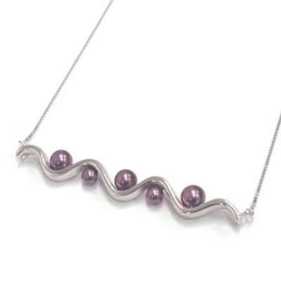 素材を曲線にすることで柔らかさや優しさをだすために、ウェーブの幅や全体的な長さなどバランスを考えました。職人と試行錯誤し美しい曲線がうまれました。これは機械では難しく職人がひとつひとつ手作業で製作しています。そのうえでアコヤ真珠にこだわり仕上げました。