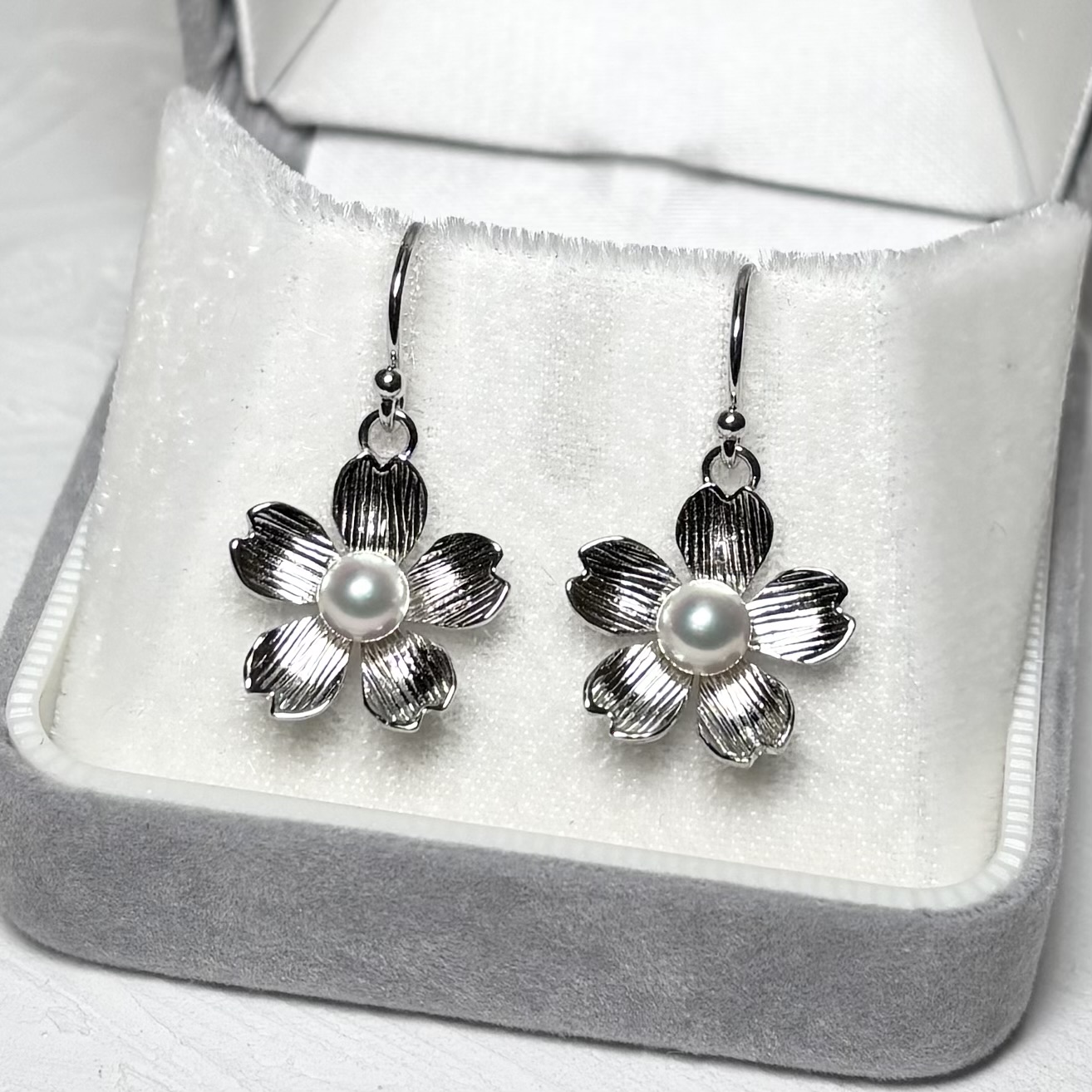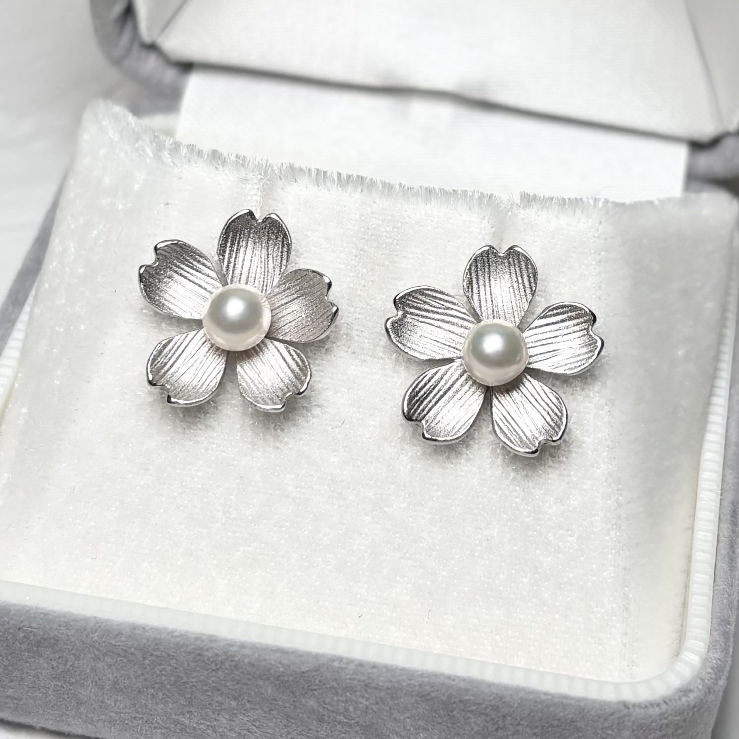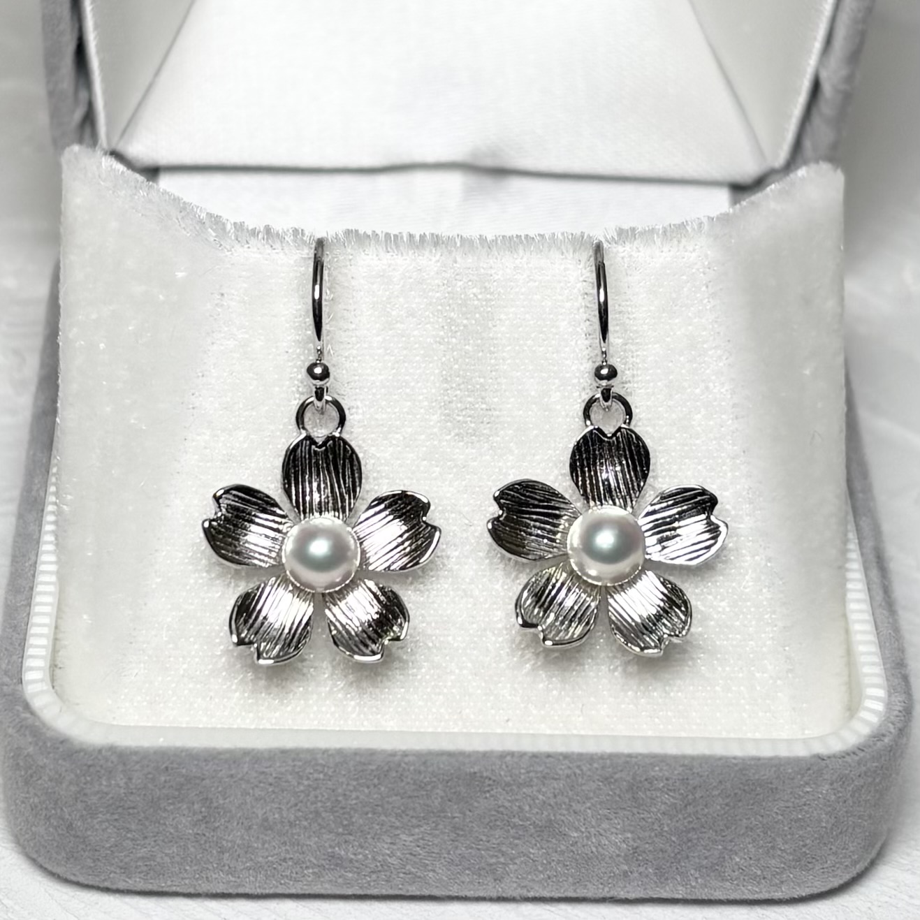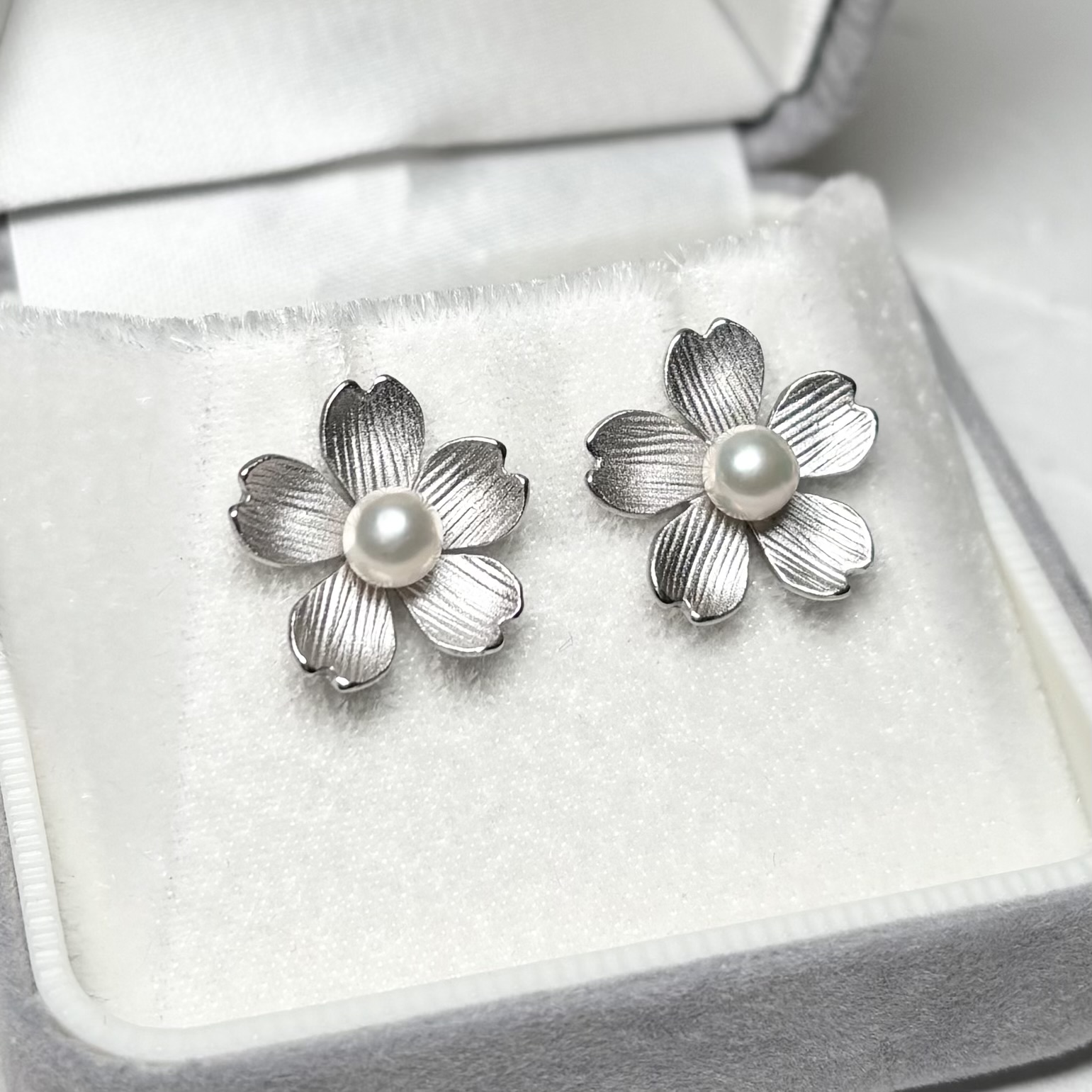 日本を代表する桜の花をモチーフに、アコヤ真珠をあしらったパールピアス,イヤリングです。