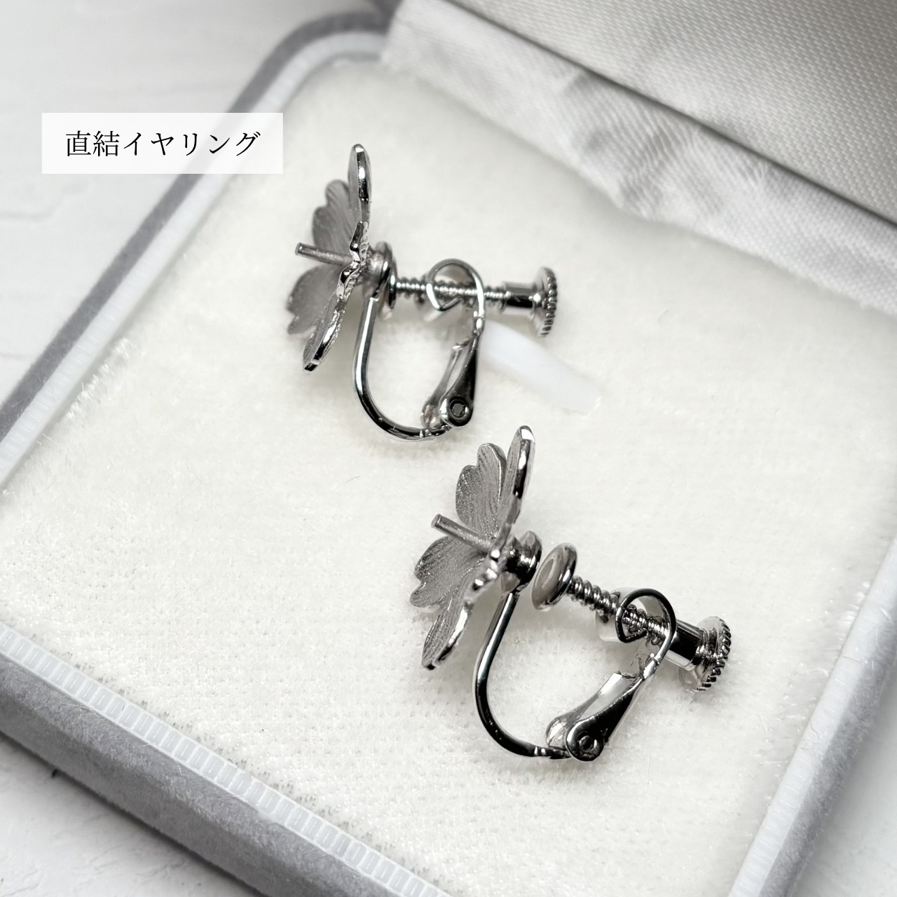 ピアスはフックタイプと直結タイプ、イヤリングはぶら下がり式と直結タイプ の2種類をご用意しております。
