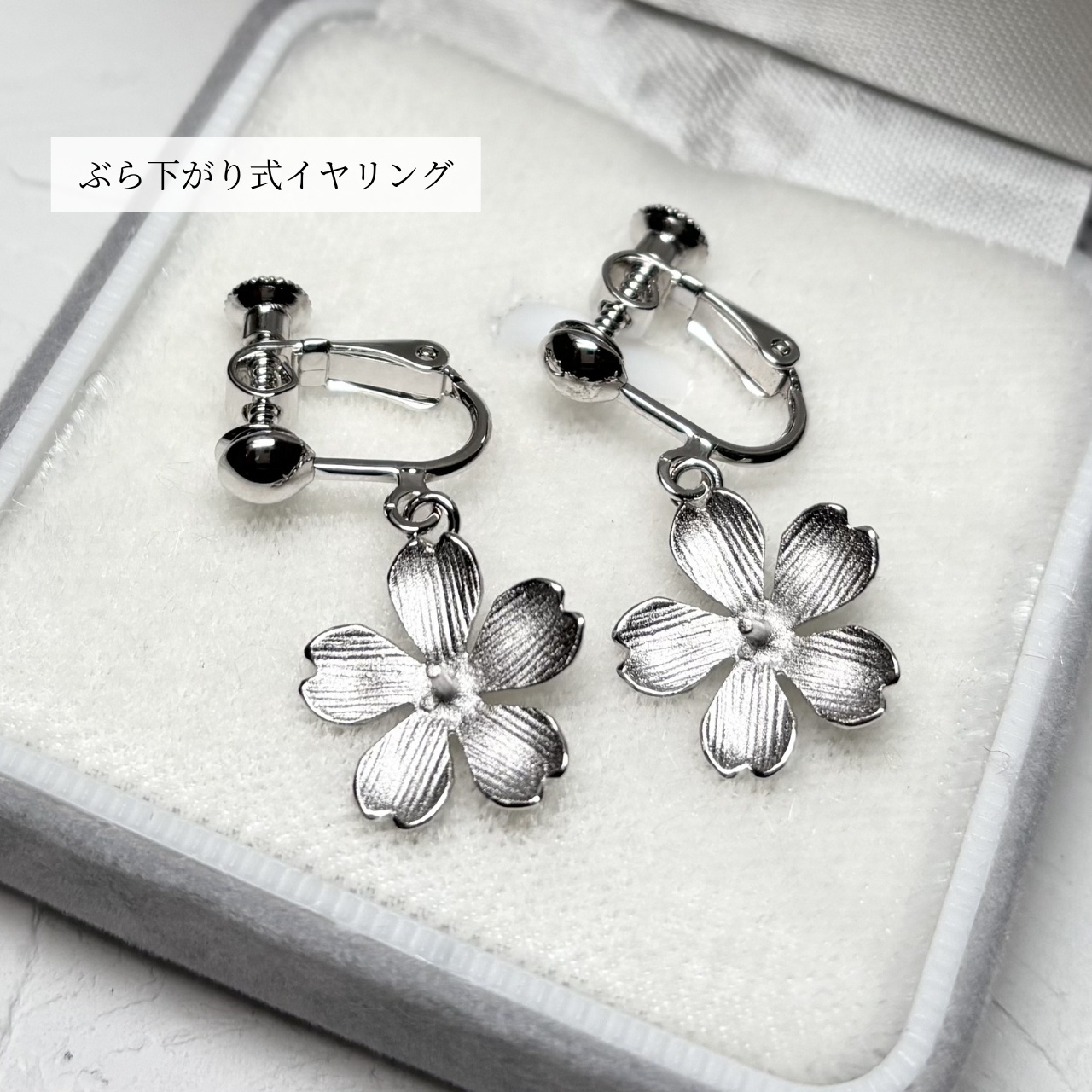 フックタイプやぶら下がり式イヤリングは、動くたびに耳元でやさしく揺れ、軽やかで華やかな印象に。