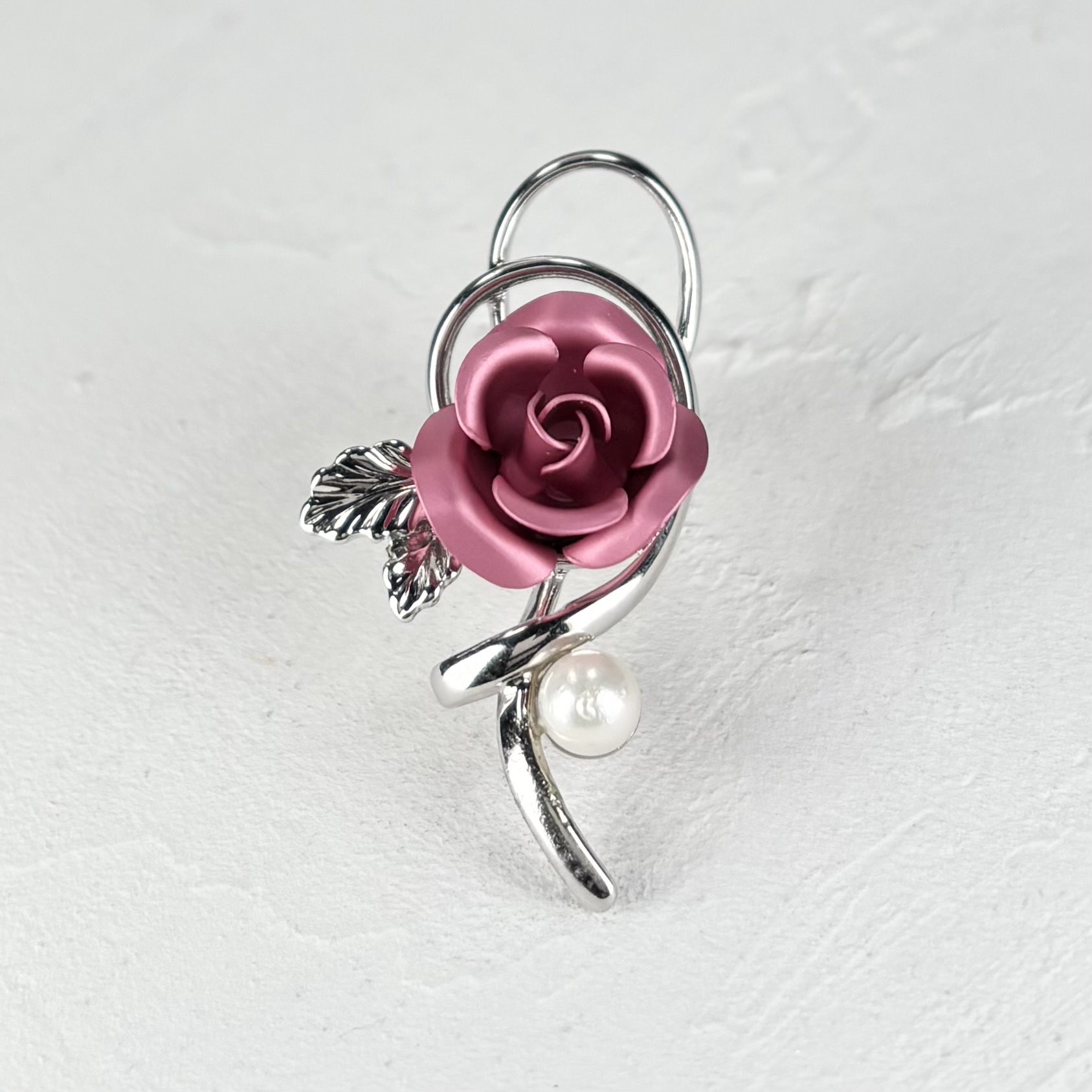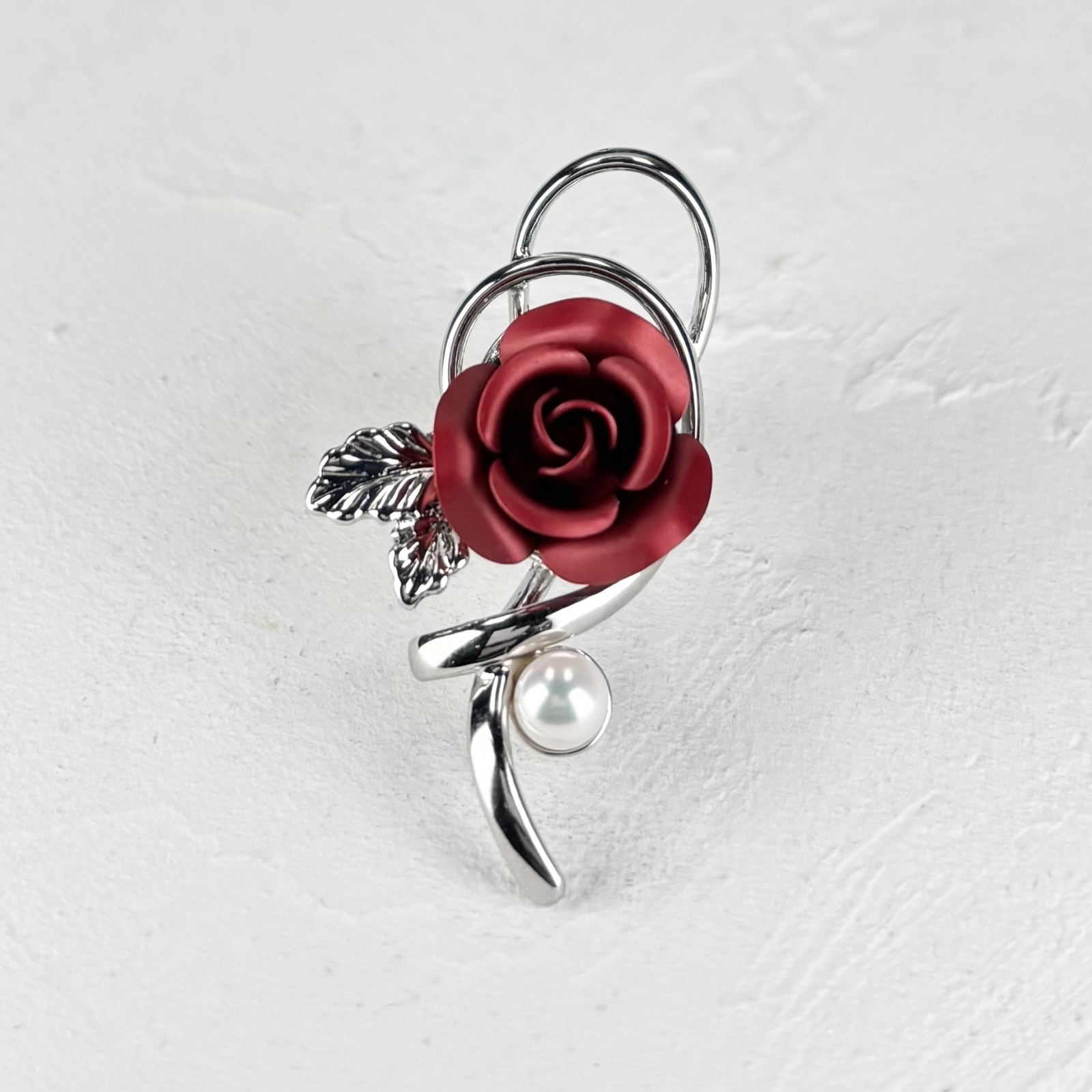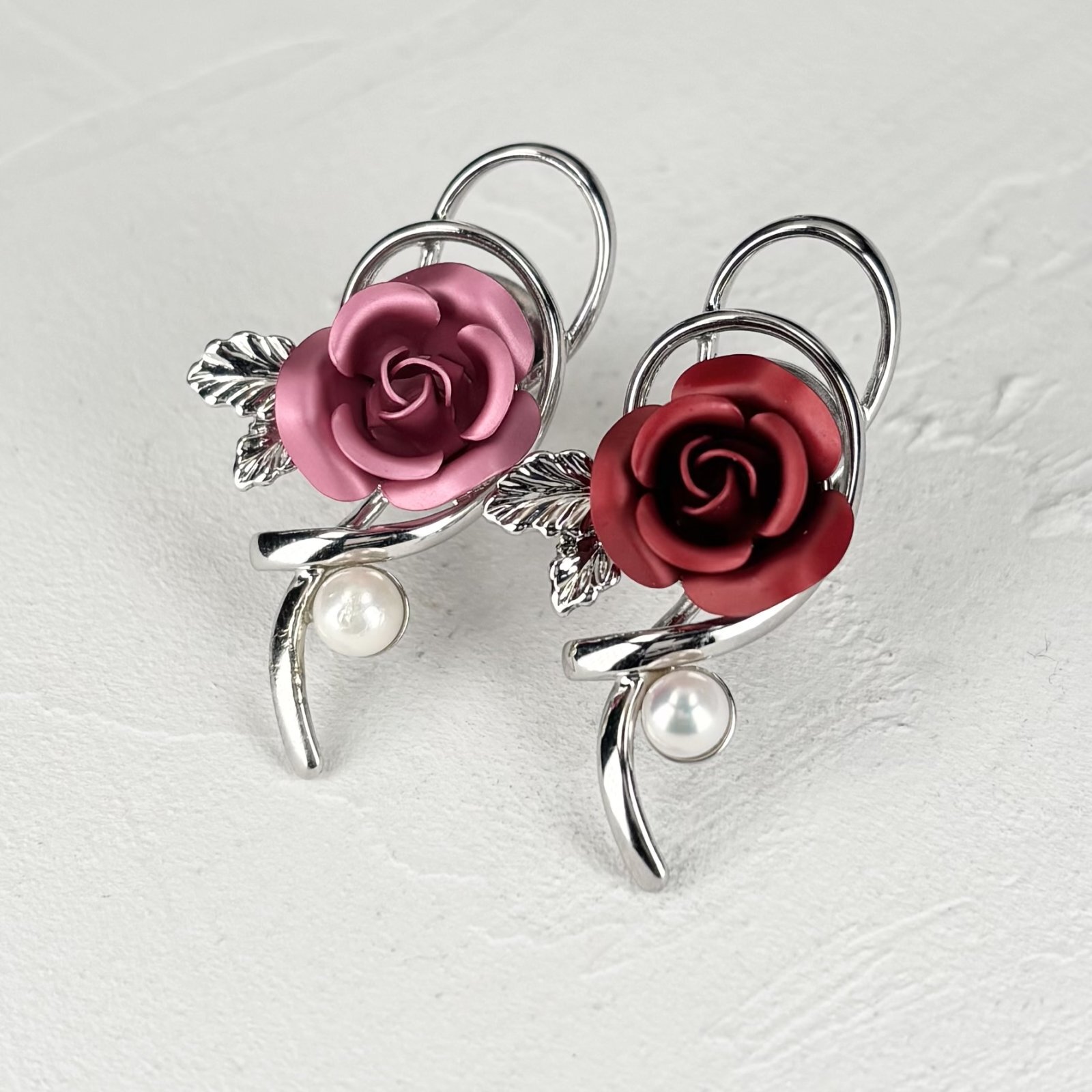 繊細なバラモチーフに上質なアコヤ真珠をあしらった上品なピンブローチです。花びらの繊細な立体感と、優しく輝く真珠が絶妙に調和し、華やかさの中に落ち着きのあるエレガンスを演出します。カラーはやさしい雰囲気のピンクとクラシカルな赤の2色展開。胸元やスカーフに添えるだけで、コーディネートのアクセントに。大切な方への贈り物にもオススメのアイテムです。