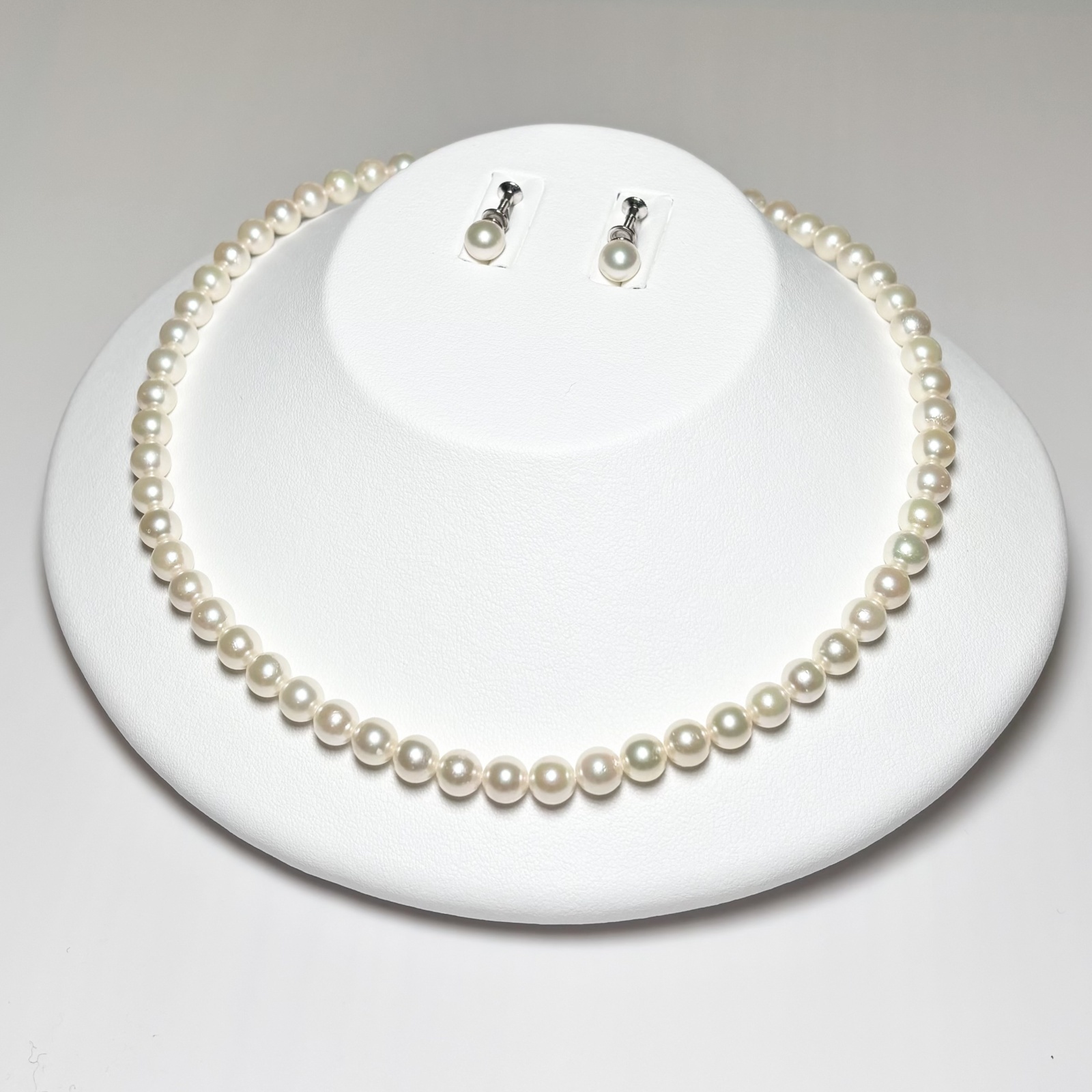 冠婚葬祭を始め、入学式や卒業式、成人式などのフォーマルにふさわしいホワイトカラーのアコヤ本真珠ネックレスセットです。スタンダードだからこそ上質な真珠でつくられたネックレスセットをお選びください。真珠のサイズは7-7.5mmと日本人の体形や着けやすさなどを考えた場合バランスが良いサイズです。