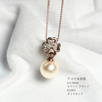 アコヤ真珠 パールペンダント 6-6.5mm ホワイト ラウンド K10PG ダイヤ ハートモチーフ 約40cm ベネチアンチェーン