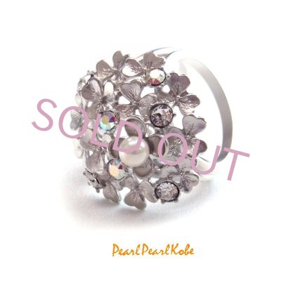 アコヤ真珠 スカーフリング チューリップ 4.5-5mm ホワイト ラウンド スワロフスキー 紫 黄色 白 ブラス