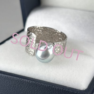 アコヤ真珠 パールリング 7.5-8mm バロック ナチュラルグレー 無調色 18号 SV製