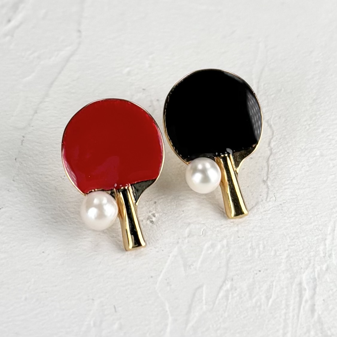卓球モチーフのパールタックブローチです。カラーは黒と赤の2色ご用意いたしました。お好きな色をお選びいただけます。真珠は4-4.5mmの上質なアコヤ本真珠をあしらっております。ラバーの色と球にみたてた真珠の組み合わせがお洒落です。
