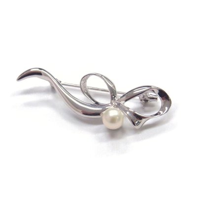 アコヤ真珠 パールブローチ ラウンド ホワイト グレー シルバー製 SV925 曲線 S字5.5-6 6.5-7mm