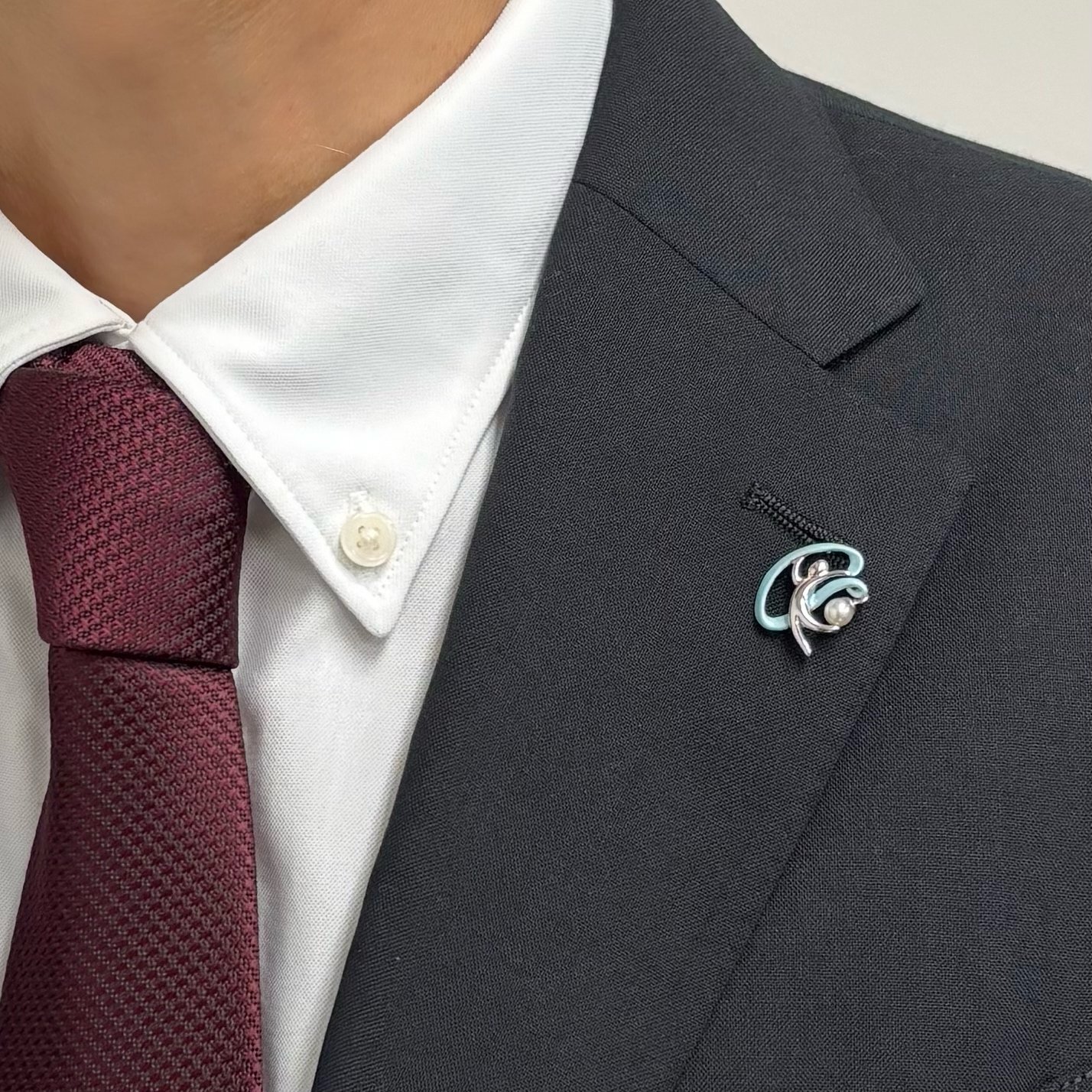 リボンが流れるよう、アコヤ真珠は手具のボールにみたてたデザインです。性別や年齢問わずお使いいただけます。大きさはつけやすいプチサイズです。遊び心があるデザインです。タックピンなのでお洋服だけでなくお気に入りの布製のカバンなどにつけるのもお洒落です。大切な贈り物にもオススメです。