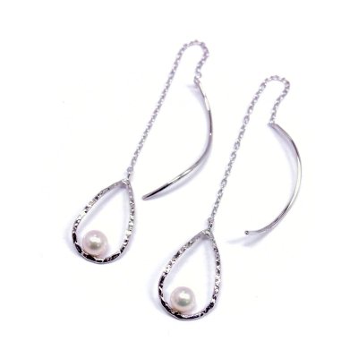 アコヤ真珠 パールフックピアス ダイヤ型モチーフ 6.5-7mm ホワイト シルバー製 大ぶりピアス