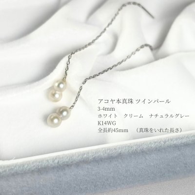 アコヤ真珠 ツインパールピアス 3-4mm ホワイト クリーム ナチュラルグレー アメリカンピアス K10YG