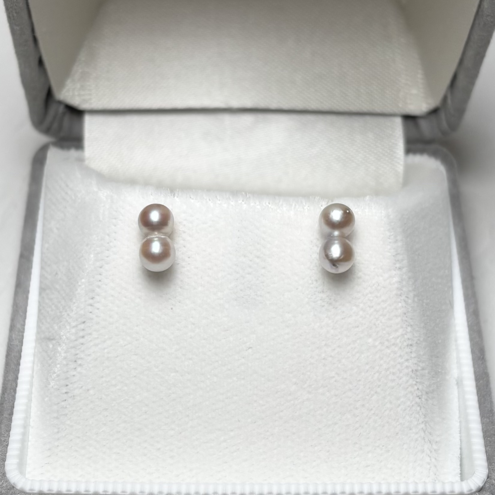 アコヤ真珠 ツインパールピアス 4-5mm シルバーグレー 無調色 K18YG K14WG K10PG