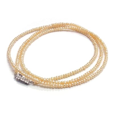淡水真珠をあしらったベビーパールロングネックレスです。長さは80cmと100cmご用意しております。真珠のサイズは2.5-3mmと一粒一粒が小さく輝きがあります。そのため、身につけると繊細さと華やかさが同時に感じられます。ホワイトカラーの真珠は、定番として派手になりすぎず重ねづけにも最適な大きさです。