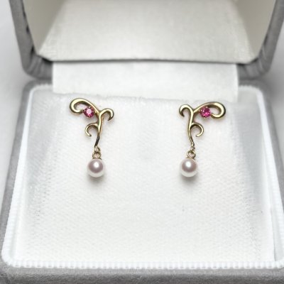 アコヤ真珠 ベビーパールピアス 3.5-4mm K18YG ルビー ハート 限定品