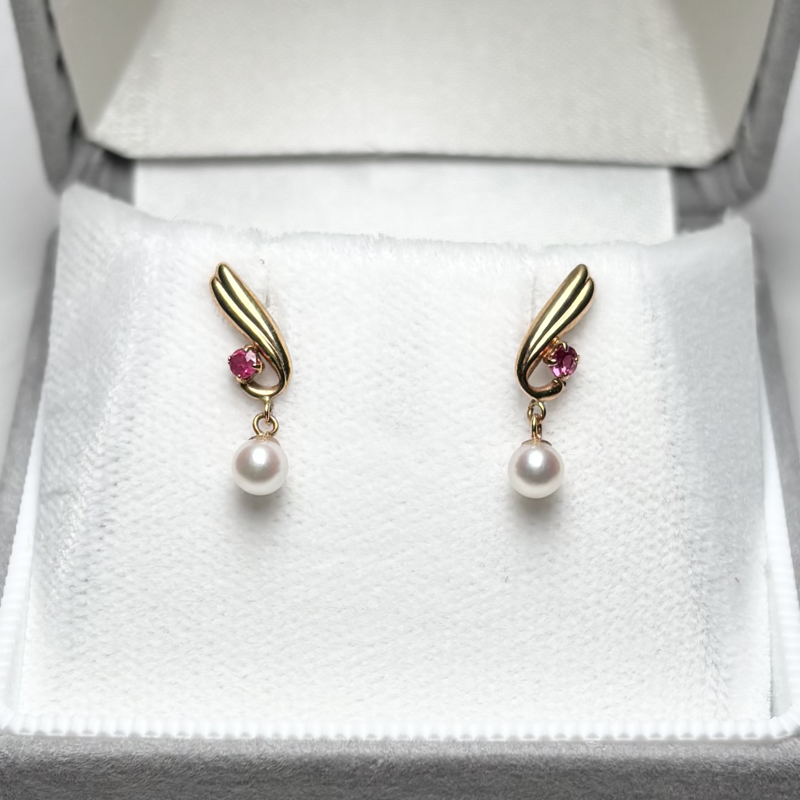 アコヤ真珠 パールピアス 3.5-4mm ホワイト ラウンド ルビー K18YG 1点物