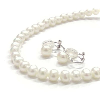 色艶の良い上質な淡水真珠をあしらったパールネックレスセットです。定番のホワイトカラーは冠婚葬祭やフォーマルシーンに欠かせません。また、汗や水にも強いのでカジュアルにも気兼ねなくお使いいただけます。真珠のサイズは6.5-7mmと程よいサイズ感でコーディネートにさりげなく馴染みます。ラウンドよりもよりカジュアル感のある楕円形のような形がより魅力的に。