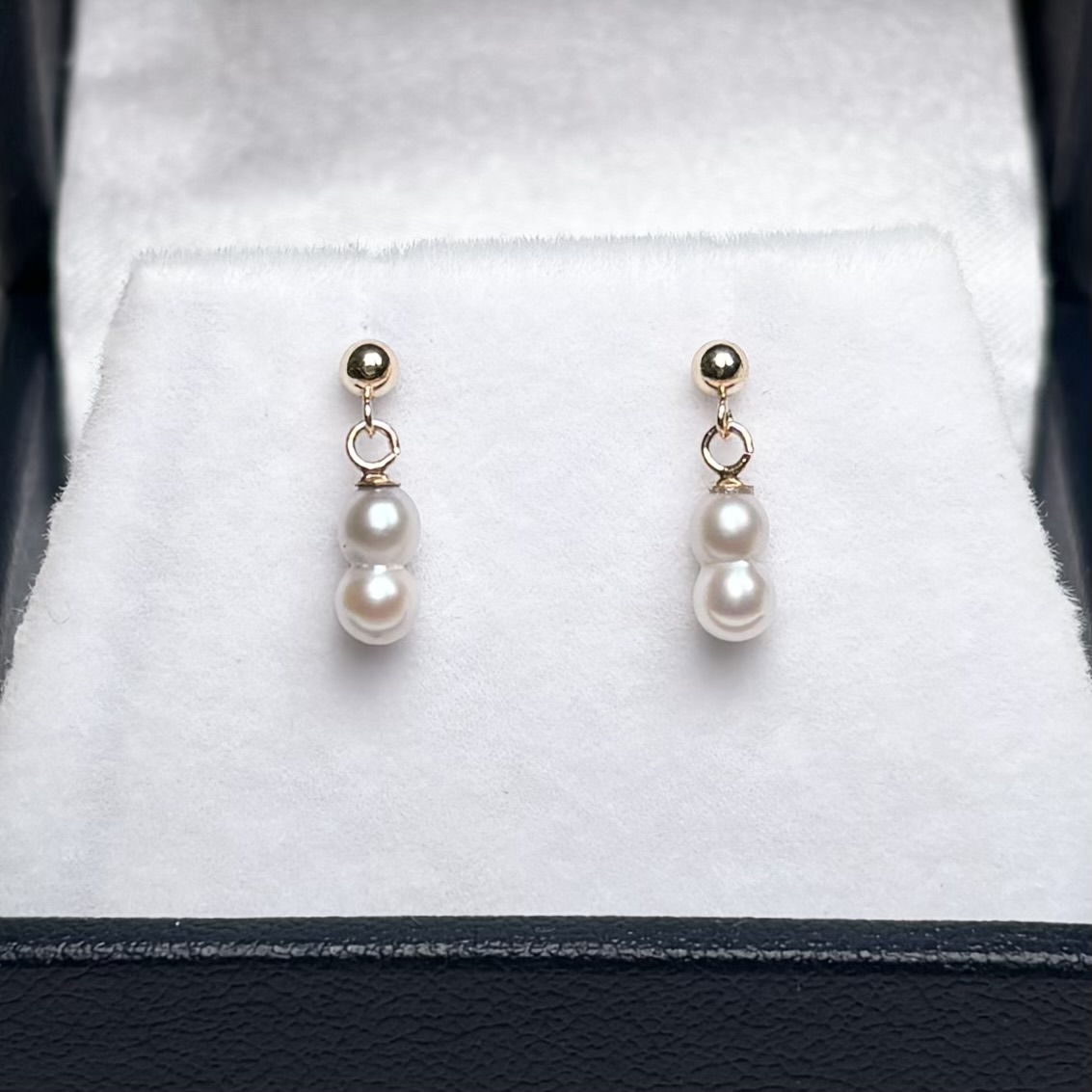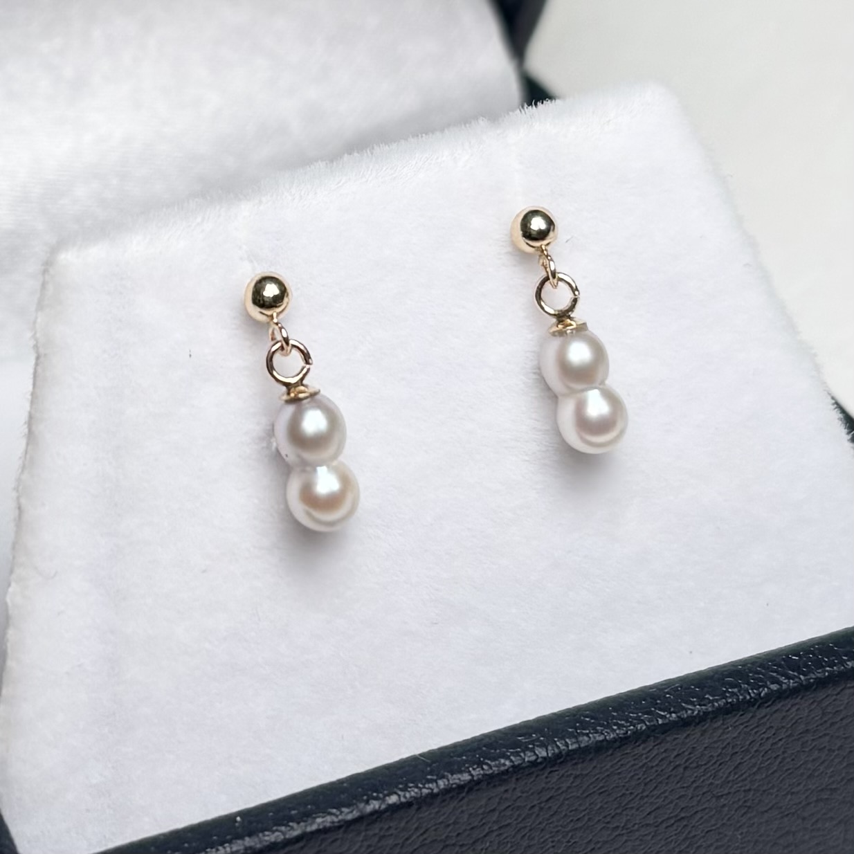 アコヤ真珠 ツインパールピアス イヤリング 3-4mm ホワイト クリーム ナチュラルグレー K10YG SV925製 直結ピアス
