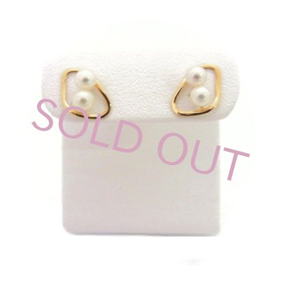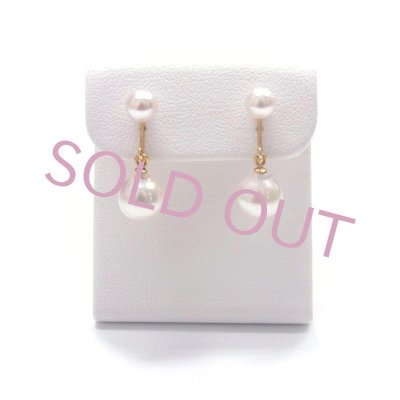 ピアスはアコヤ本真珠を使っています。7-7.5mmのフォーマルにもお使いいただけるサイズです。真珠のクリーム色がイエローゴールドとワントーンにまとまり輝きます。