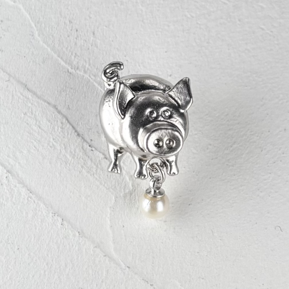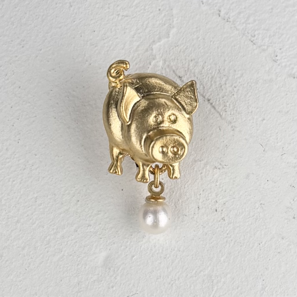 「豚に真珠」の諺にあるようなユーモラスな真珠のパールピンブローチです。上質なアコヤ本真珠とキュートなブタの組み合わせはユニークです。