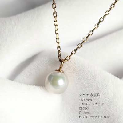 アコヤ真珠 一粒パールペンダント 5-5.5mm ベビーパール ホワイト ラウンド K10PG アズキチェーン 45cm スライド式アジャスター