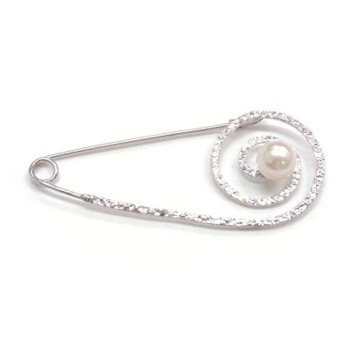 一粒のアコヤ本真珠が美しいシルバー製パールブローチ・ショールピンです。サイズは存在感がある7.5-8mmを使用しています。アコヤ真珠が映えるので、一つ着けるだけでコーディネートを格上げしてくれます。
