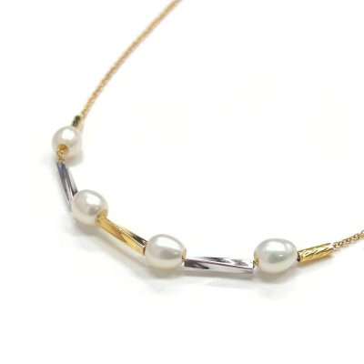 素材は14金ゴールドフィルド(14KFG)を使用しております。深みのある上品な輝きを放ちます。金が厚く剝がれにくいので長くご愛用いただけます。クラスプは装着しやすいようにマグネットクラスプを使用し、真珠の色にあわせてゴールドカラーにしています。長さは20cmで、スライド式アジャスターが付いておりますので、お好きな長さに調節していただけます。