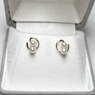 アコヤ真珠 パールピアス 8mm ホワイト ラウンド ダイヤモンド 0.02ct K18YG