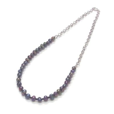 淡水真珠ケシバロックにシルバーチェーンを組み合わせたデザインパールネックレスです。気分やコーディネートに合わせて着け方を使い分けできる万能パールジュエリーです。貝が生み出した唯一無二の形,色が神秘的で美しいケシパールが大人の抜け感漂うスタイルを演出してくれます。長さは男性の方にも着けやすい51cmにしていますので男女兼用でお使いいただけます。