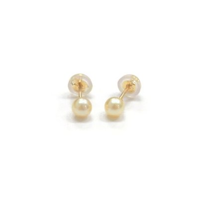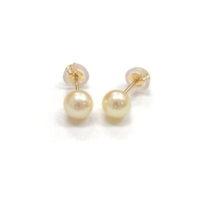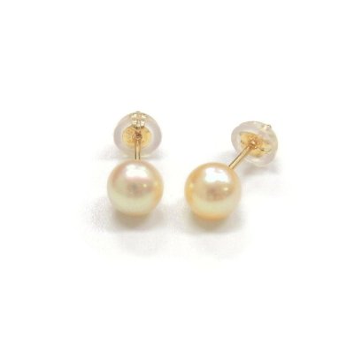 艶やかな輝きを放つアコヤ真珠スタッドパールピアスです。自然が生み出した無調色ゴールドカラーはしっとりとした柔らかな光沢があり、身に着けるだけで顔周りを上品に飾ります。黄色は本来アコヤ貝が持っている色目ですので、輝きが強く真珠の存在感が増します。真珠層が厚くなければゴールドカラーにならないので生産量は少なく、極わずかです。弊社は長年卸をしていますのでご用意することができます。