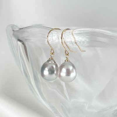 アコヤ真珠 フックパールピアス ドロップ 雫型 7.5-8mm ナチュラルグレー 無調色 K14WG