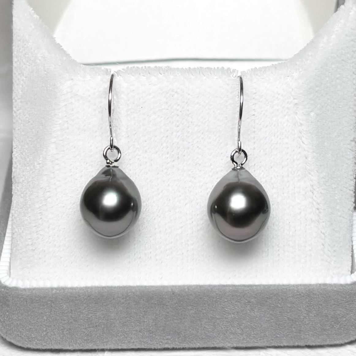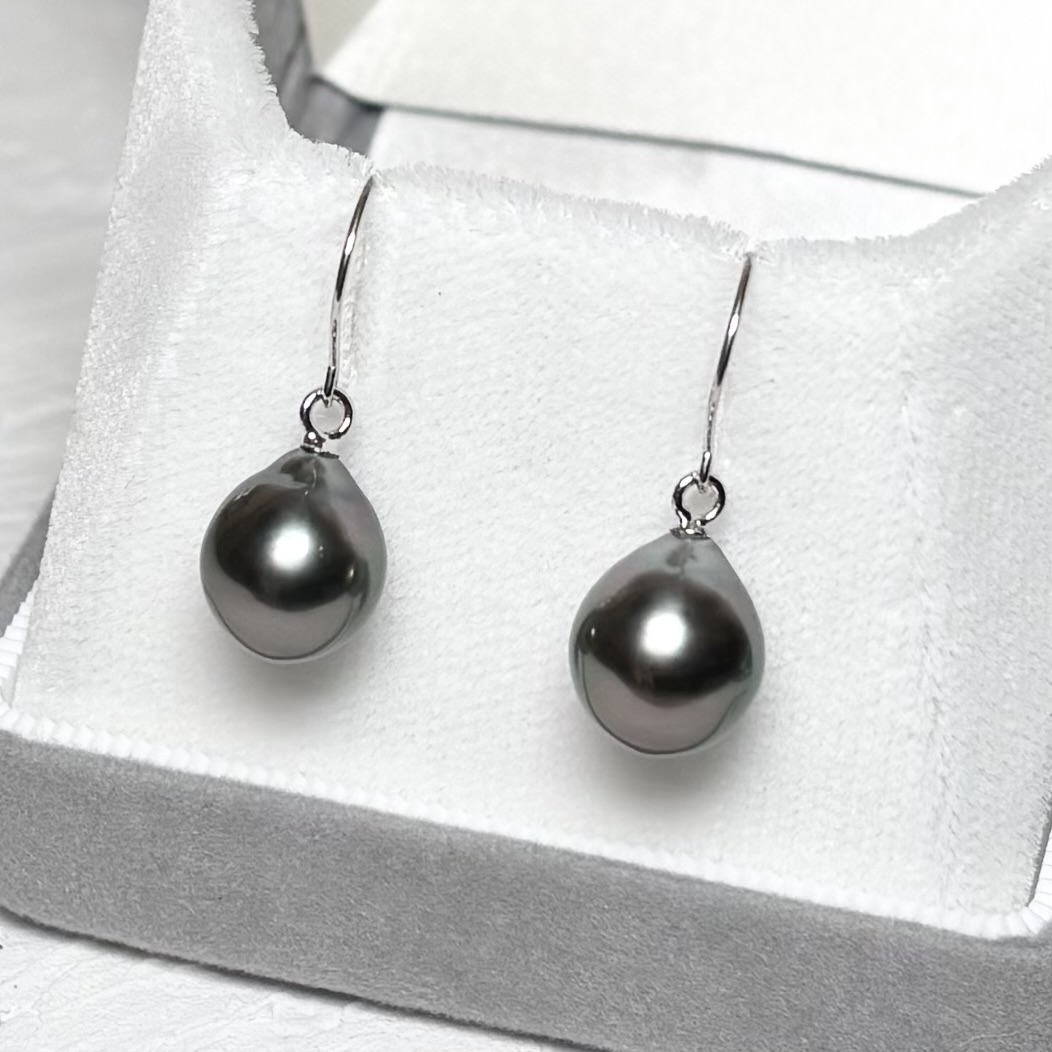 黒蝶真珠 フックパールピアス 8.75×10.5mm 8.5-9mm×10.5-11mm ドロップ型 ブラック K14WG