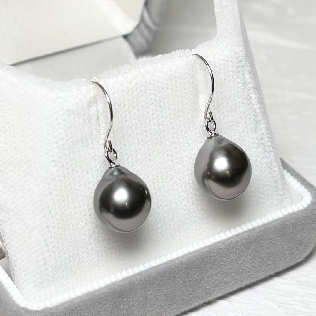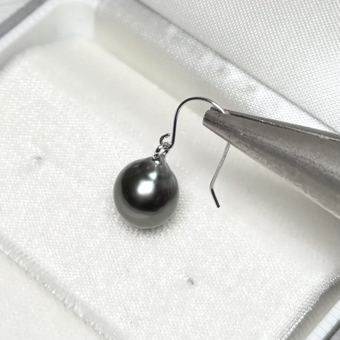 巻きや照りが良く、シルバーを帯びた黒の色味が印象的で、天然色ならではの気品ある表情をお楽しみいただけます。光の加減によって見え方が変わり、黒蝶真珠ならではの奥行きのある色合いが耳元を上品に彩ります。