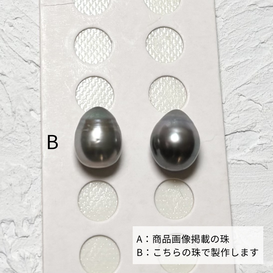 Aは商品画像に掲載している完成済みのピアス、Bは追加画像に掲載している珠を使用し、ご注文後にフックピアスに加工いたします。
