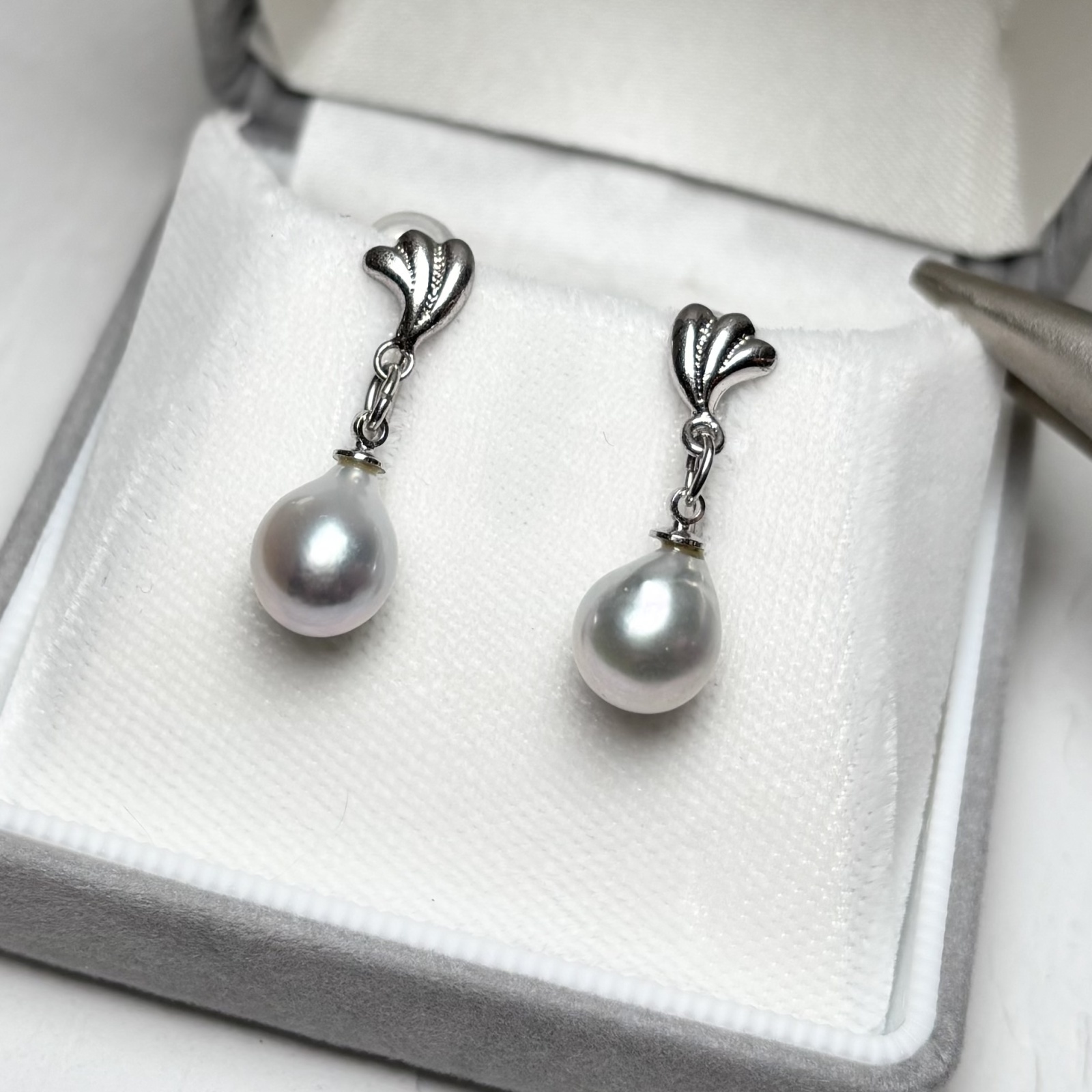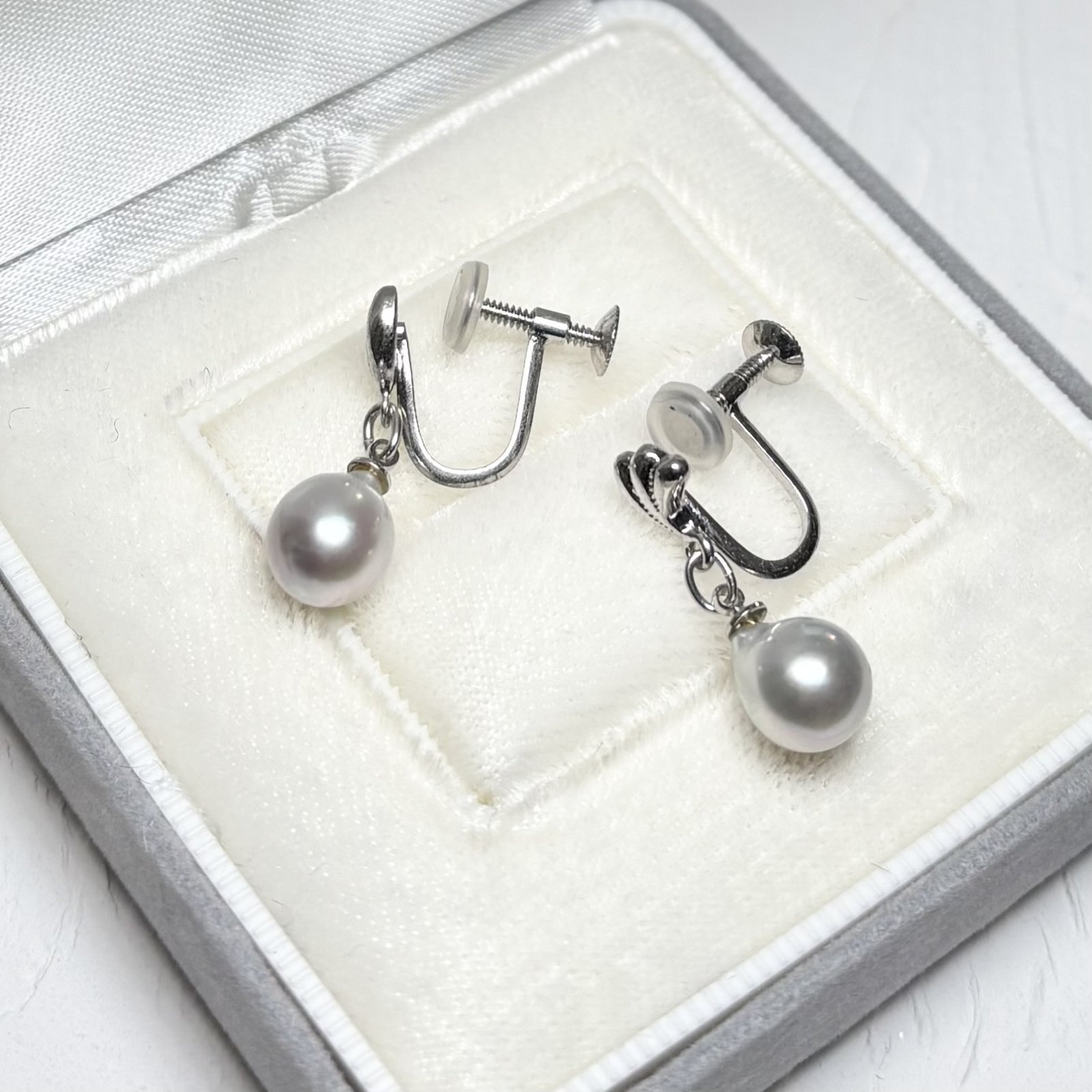 アコヤ真珠 ドロップパールイヤリング 7.5-8mm ナチュラルグレー 無調色 シルバー製 ネジバネ式 1点物