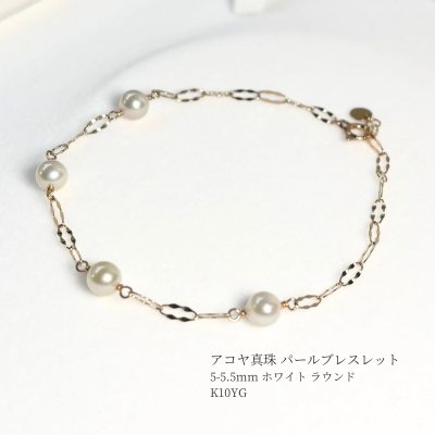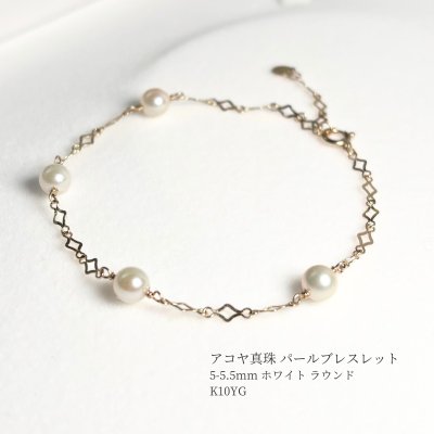 アコヤ真珠 パールチェーンピアス ホワイト 5-5.5mm ラウンド K10YG