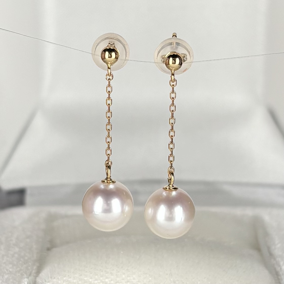 ≪1点物≫アコヤ真珠 チェーンパールピアス 7-7.5mm ホワイト ラウンド K18YG